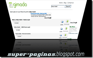 Gimado es un nuevo buscador de MP3, pones el nombre del artista o canción y te saldrá un listado, para asegurarte que es lo que buscas tienes la opción de escucharla, y para descargarla con el botón derecho en Download "guardar destino como" y directa a tu pc.