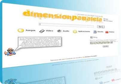 Dimensión Paralela, se trata de un sofisticado buscador de descargas directas todavía en fase “beta” en el que puedes buscar todo tipo de descargas. El buscador dispone de categorías especiales para filtrar las búsquedas como: Juegos, video, audio, aplicaciones, ebooks (libros electrónicos) y una categoría especial de adultos.