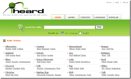 Iheard es un completo buscador y directorio de radios que emiten por internet.